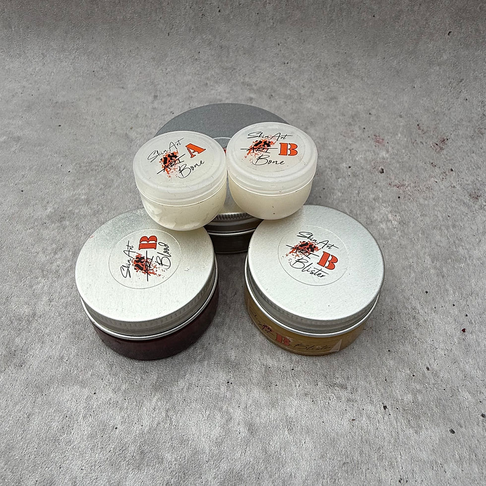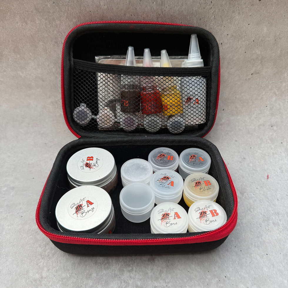 Creëer levensechte traumawonden of horror effecten met SkinArt — onze dikke, pasta-achtige 2-componenten siliconen die direct op de huid worden aangebracht.